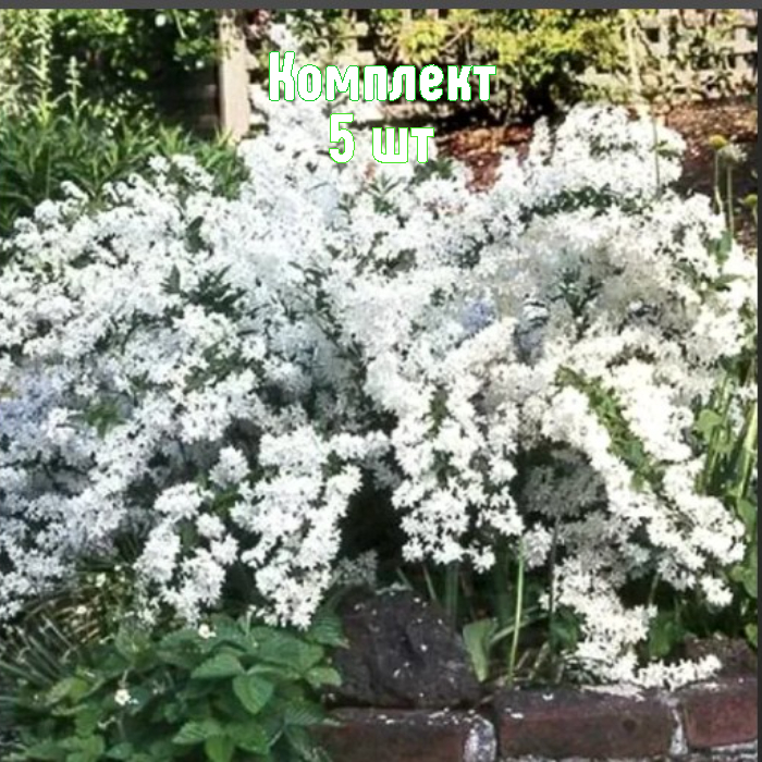 Дейция белая Pride of Rochester — набор из 5 укоренённых саженцев, готовых к посадке. Многолетний, морозостойкий кустарник с обильным махровым цветением белого цвета с розоватой изнанкой. Соцветия кистевидные, до 12 см, период цветения — примерно с июня по июль (около двух месяцев).