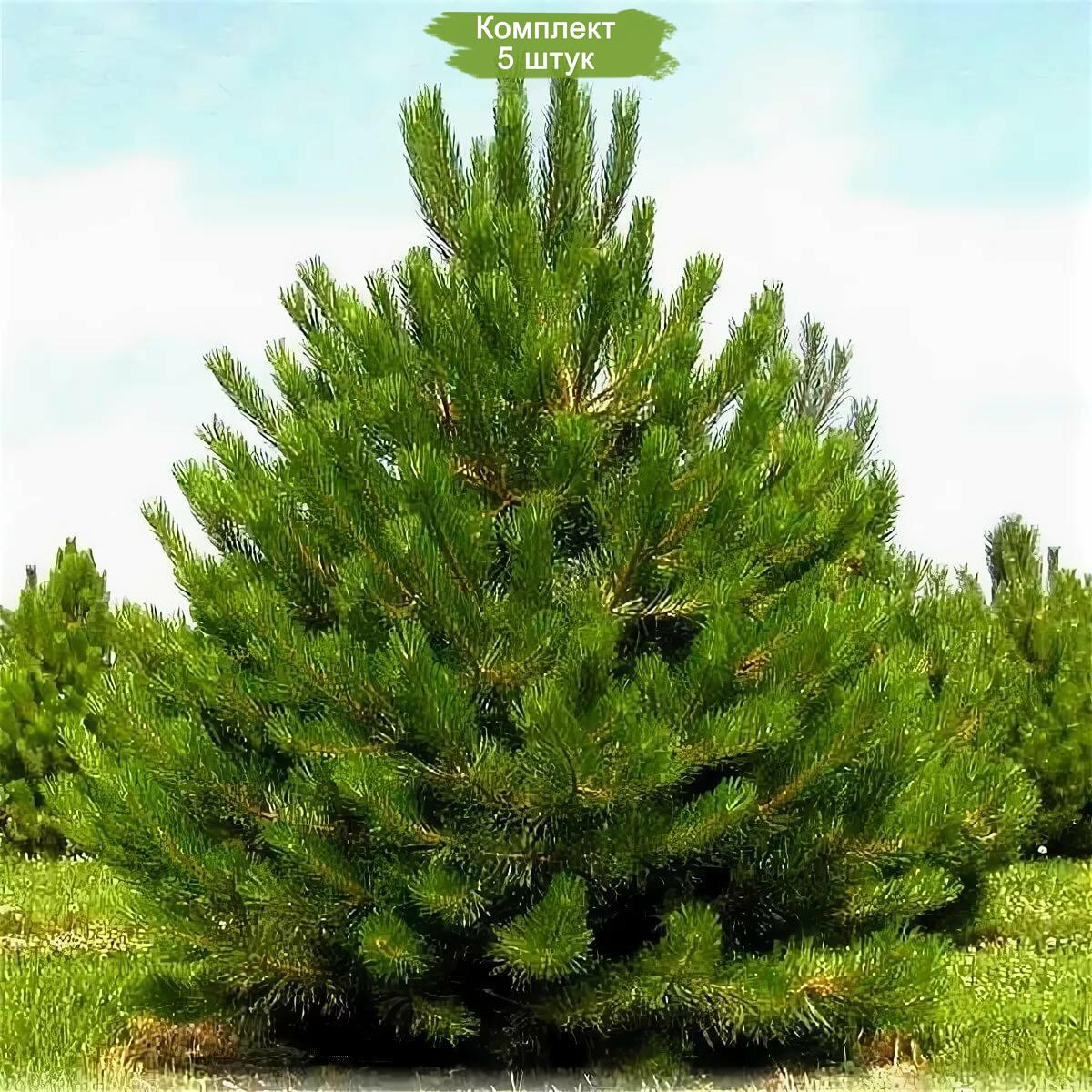 - 5 качественных саженцев сосны обыкновенной, каждый высотой 40-60 см.