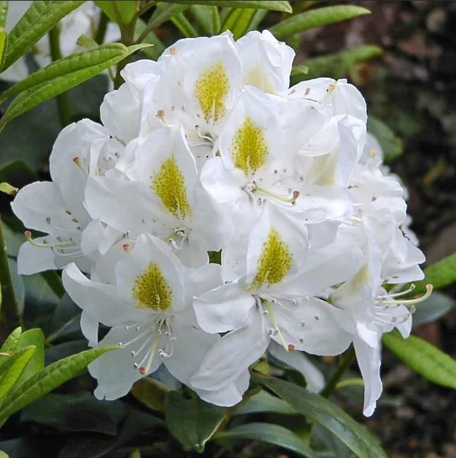 Рододендрон Мадам Массон (Madame Masson) — это изысканный кустарник, который станет настоящим украшением вашего сада. Этот сорт рододендрона отличается крупными, белоснежными цветками с ярко-желтыми пятнами в центре, которые создают эффектный контраст. Цветение начинается в мае и продолжается до начала июня, наполняя сад нежным ароматом и яркими красками.
