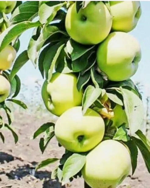 Колоновидная яблоня Белоснежка — компактный и высокоурожайный выбор для небольших участков. Саженцы быстро вступают в плодоношение (первые яблоки через 2–3 года) и дают стабильный урожай при интенсивных посадках. Плотная колонна, крупные листья и декоративный силуэт позволяют размещать ряд деревьев ближе друг к другу.